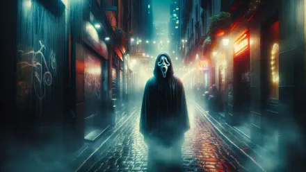 Distinguishing Features: Iconic white mask with a screaming expression, dark
