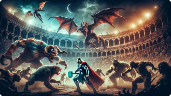 Challenges/Conflicts: Battles against Loki, Frost Giants, and other foes