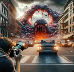 An amorphous alien creature that consumes everything in its path, growing larger with each victim in the 1958 film "The Blob".